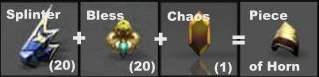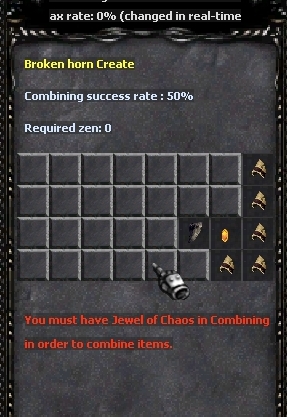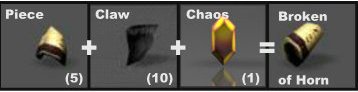 Usa la opción "Regular Combination". • 5 Piece of Horn • 1 Claw of Beast • 1 Jewel of Chaos
