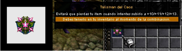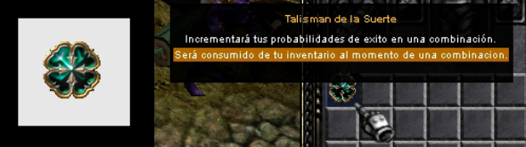 Éste talismán (TOC) previene la desaparición del item cuando se lo quiere mejorar desde +10 hasta +13 en la Máquina de Combinaciones.