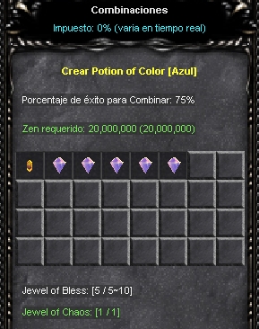 Potion of Color [Blue] • 1 Jewel of Chaos • 5 Jewel of Bless