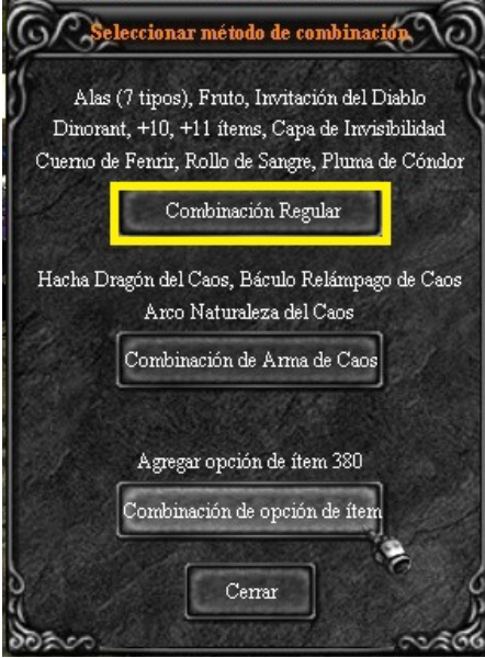 Esto nos abre otra opción en la cual debemos colocar el Blood Scrool +X, el Blood Fang +X y 1 Jewell of Chaos Si la combinación es exitosa nos dará una Invicibility Cloack.