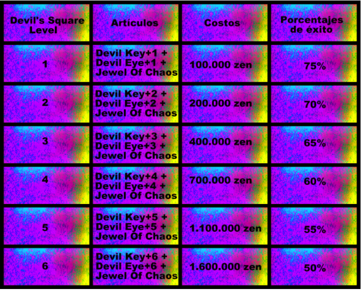 Level requerido para entrar al Devil Square: