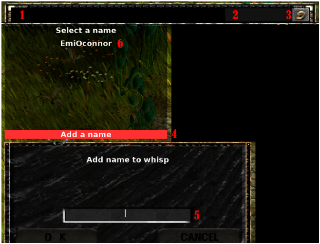 Escribimos el nombre del personaje que deseamos whispear.