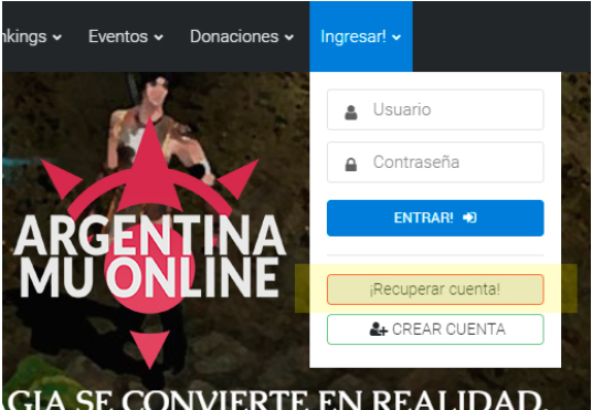 Una vez que hayamos comprobado que nuestra cuenta AÚN EXISTE, vamos a recuperarla. Para eso nos dirigimos a la barra de navegación de la web, submenú "Ingresar" -> "¡Recuperar Cuenta!"